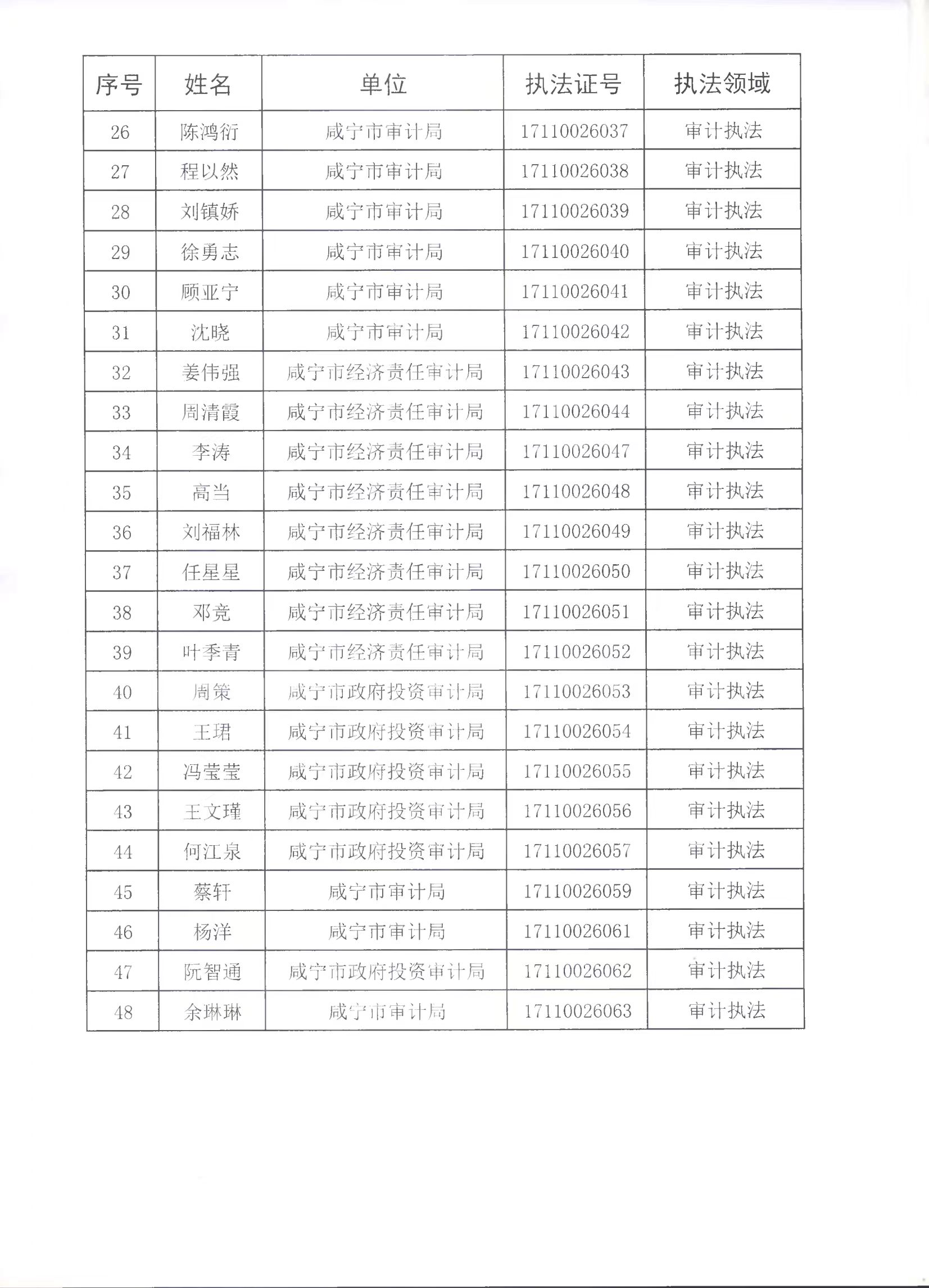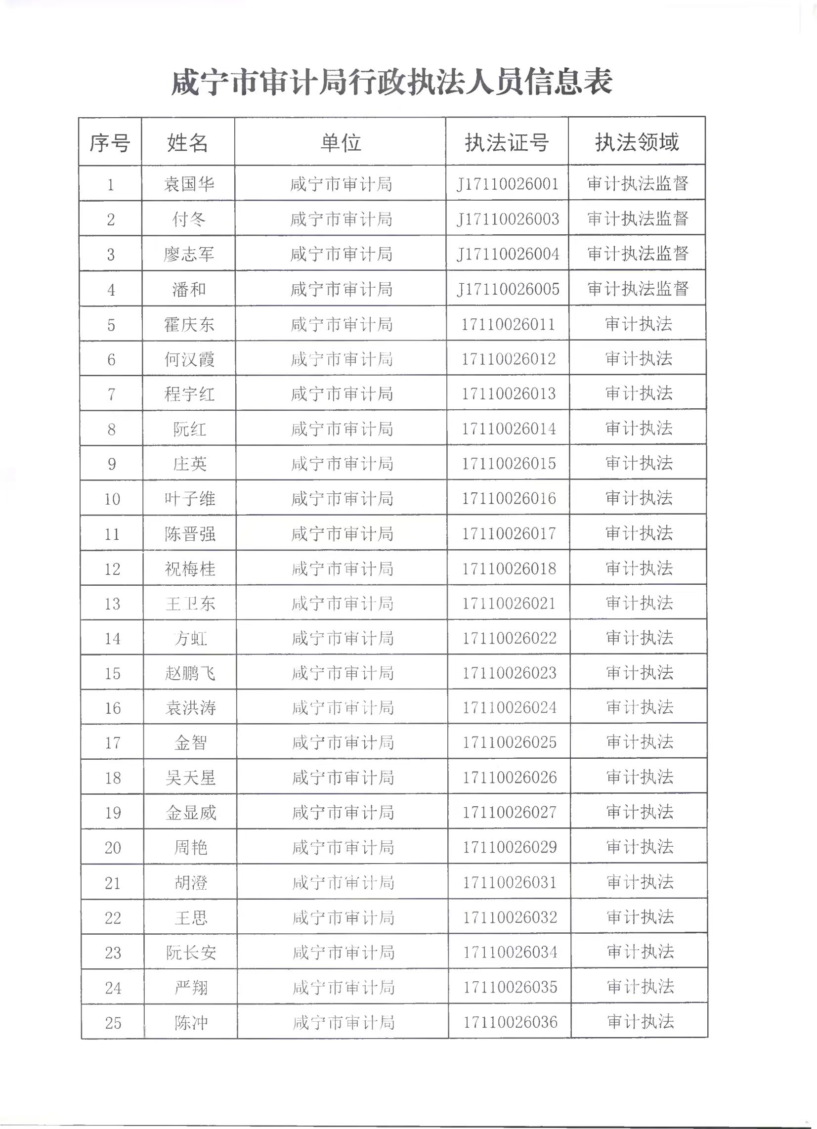 咸宁市审计局行政执法人员信息表-凯发娱乐