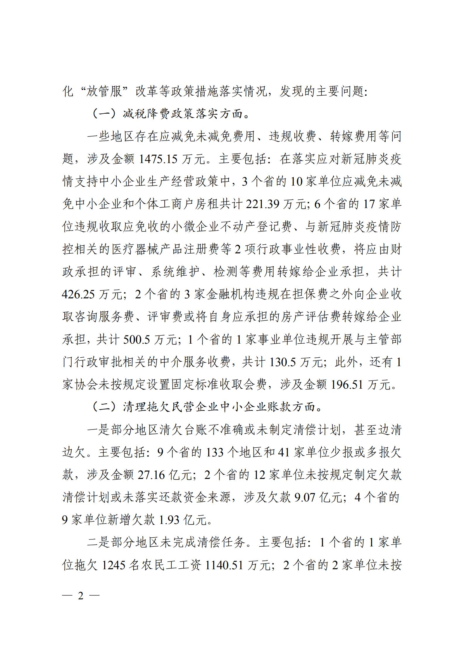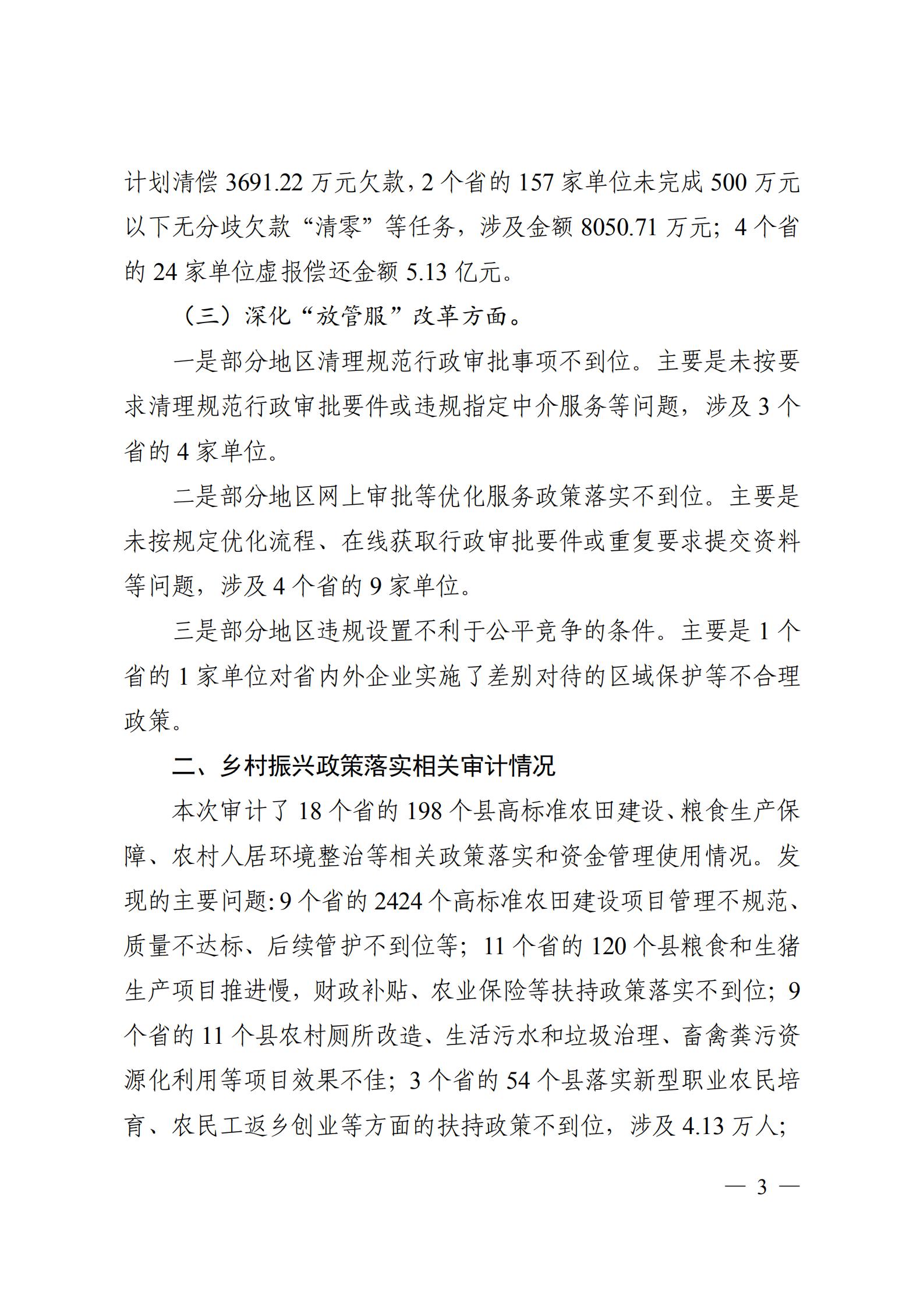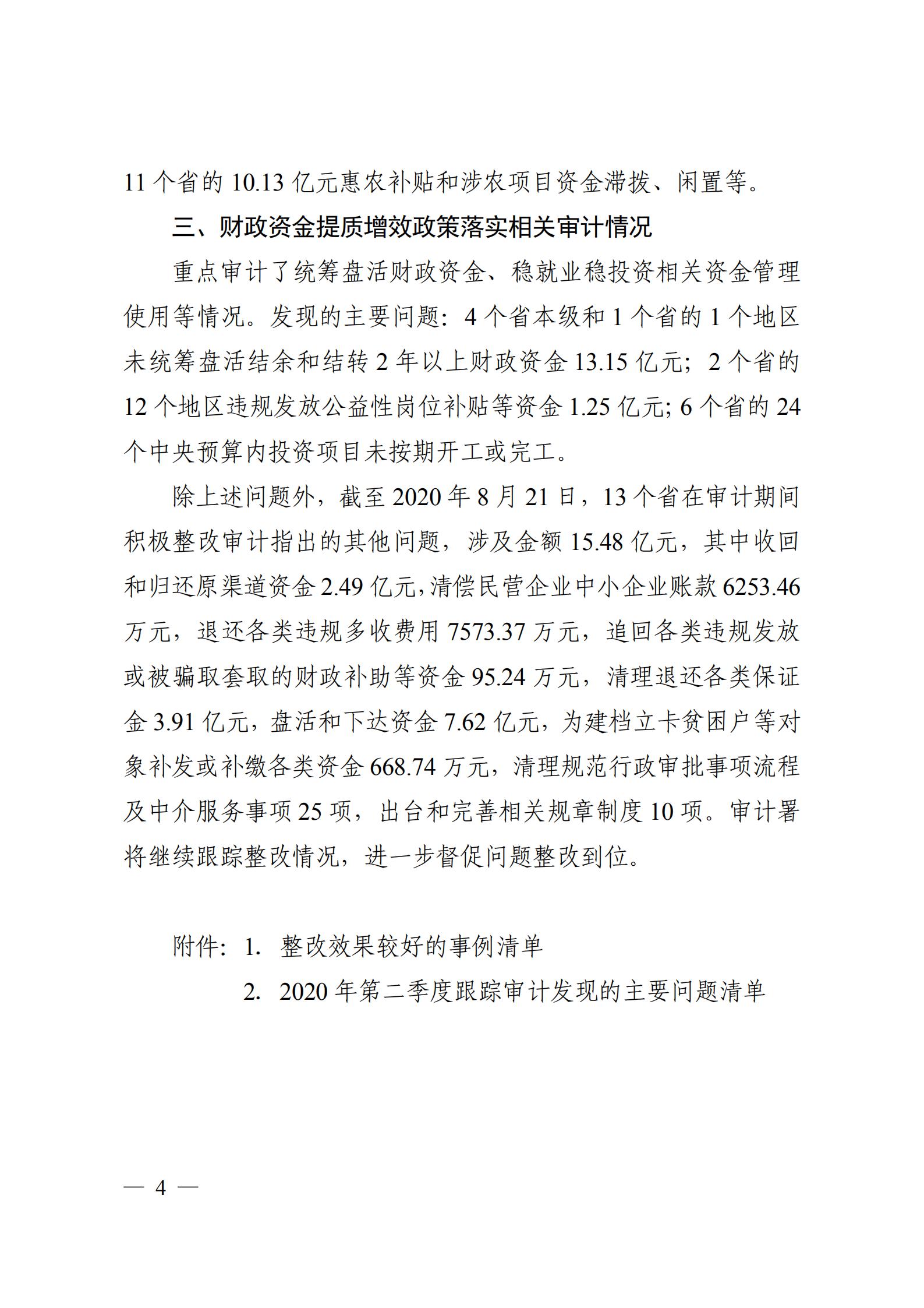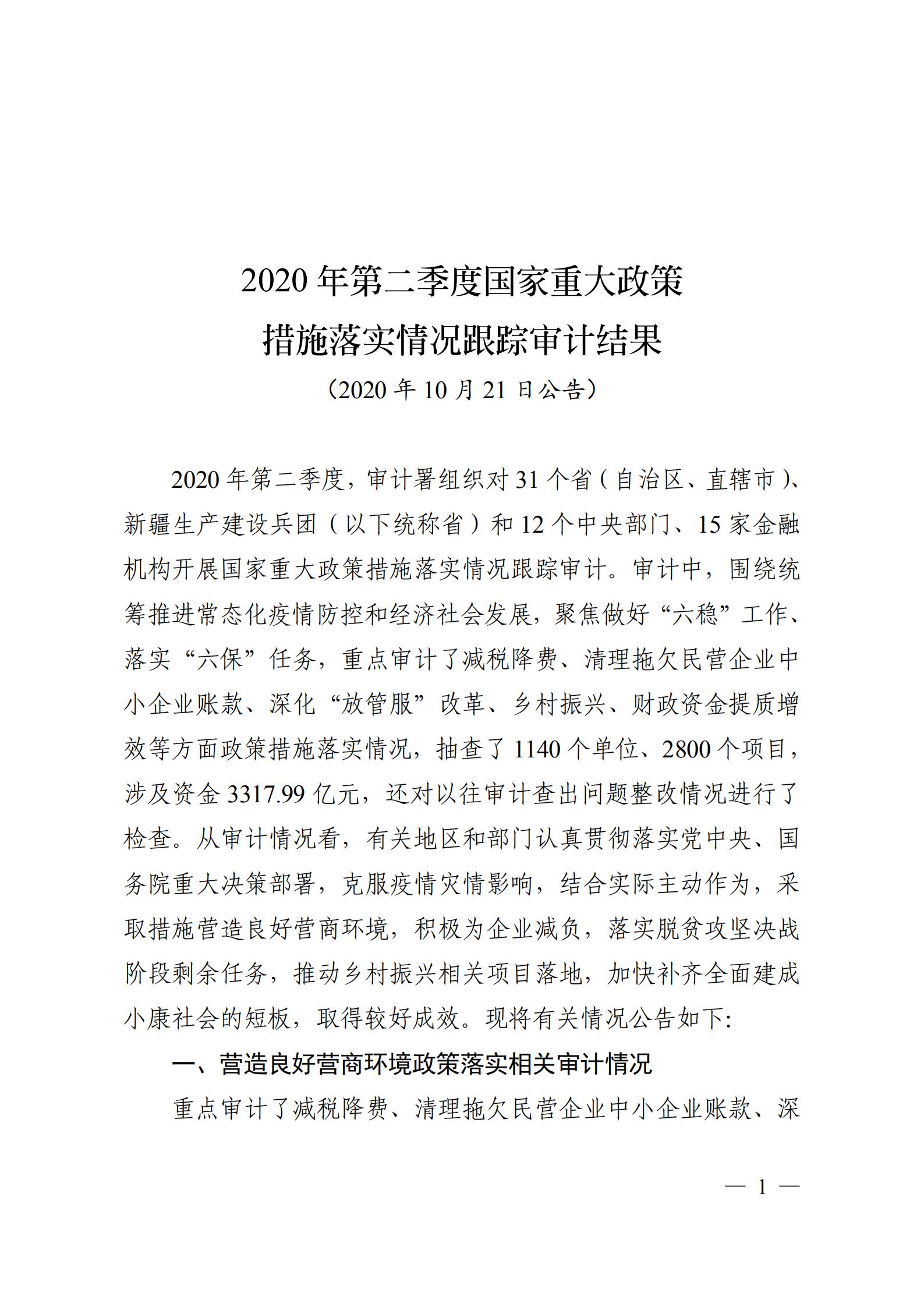 2020年第二季度国家重大政策措施落实情况跟踪审计结果