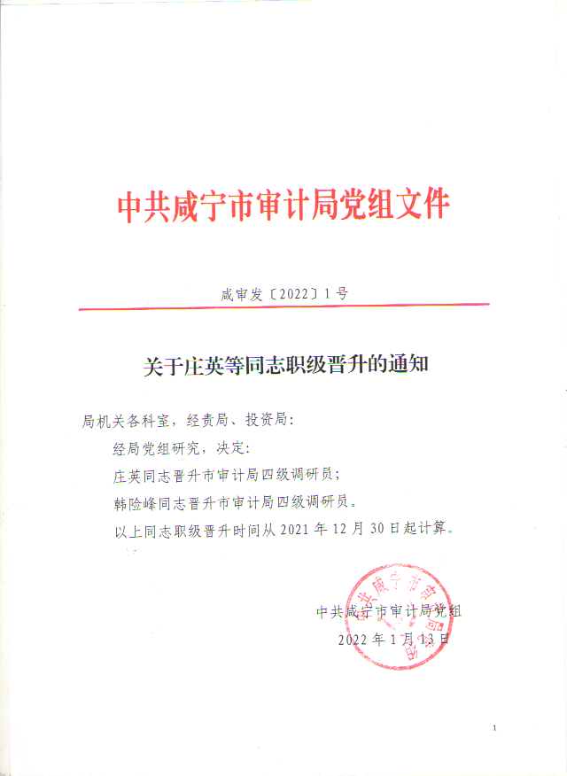 名 称: 关于庄英等同志职级晋升的通知 发布日期: 2022年02月14日