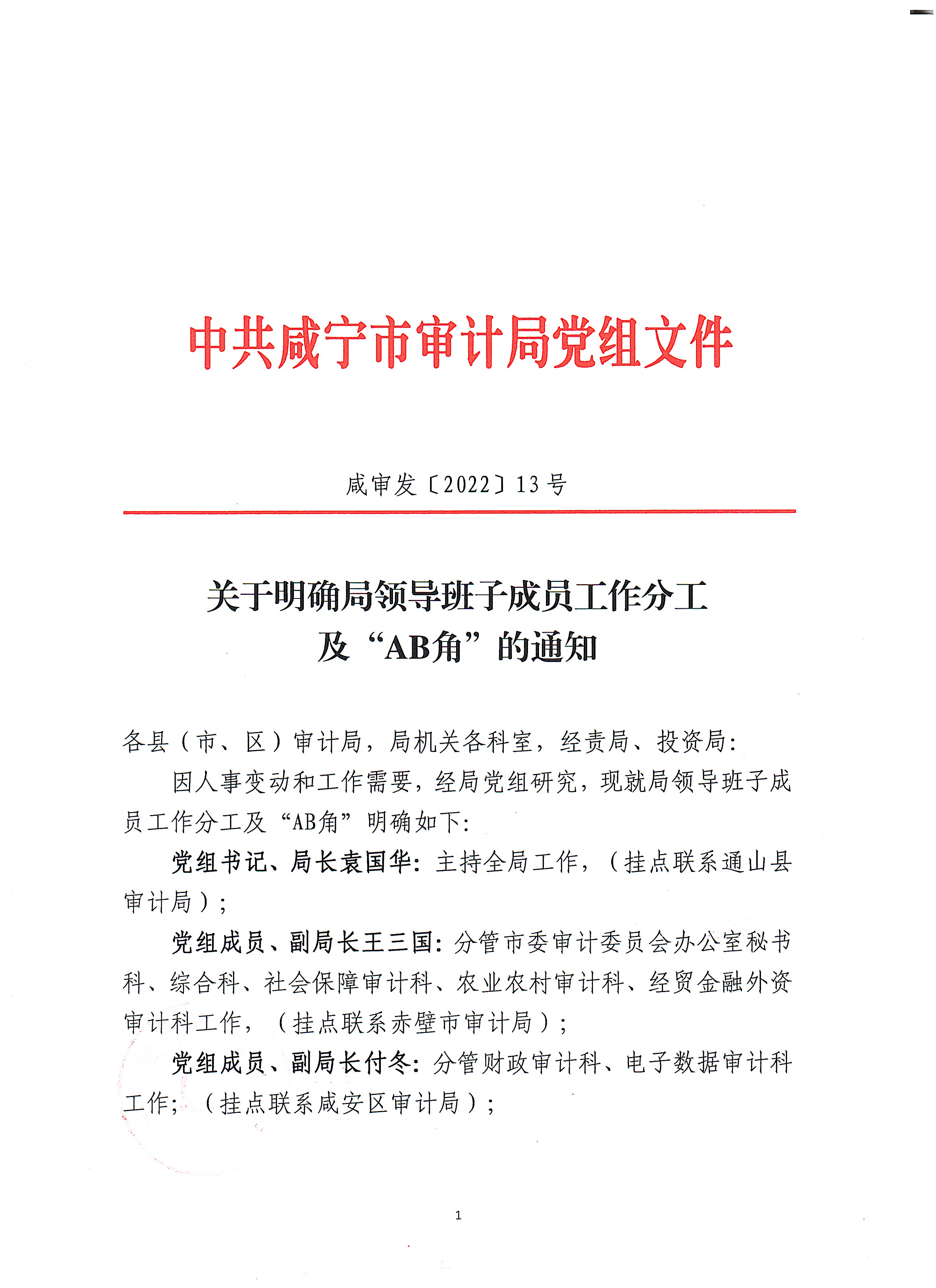 关于明确局领导班子成员工作分工及“ab角”的通知