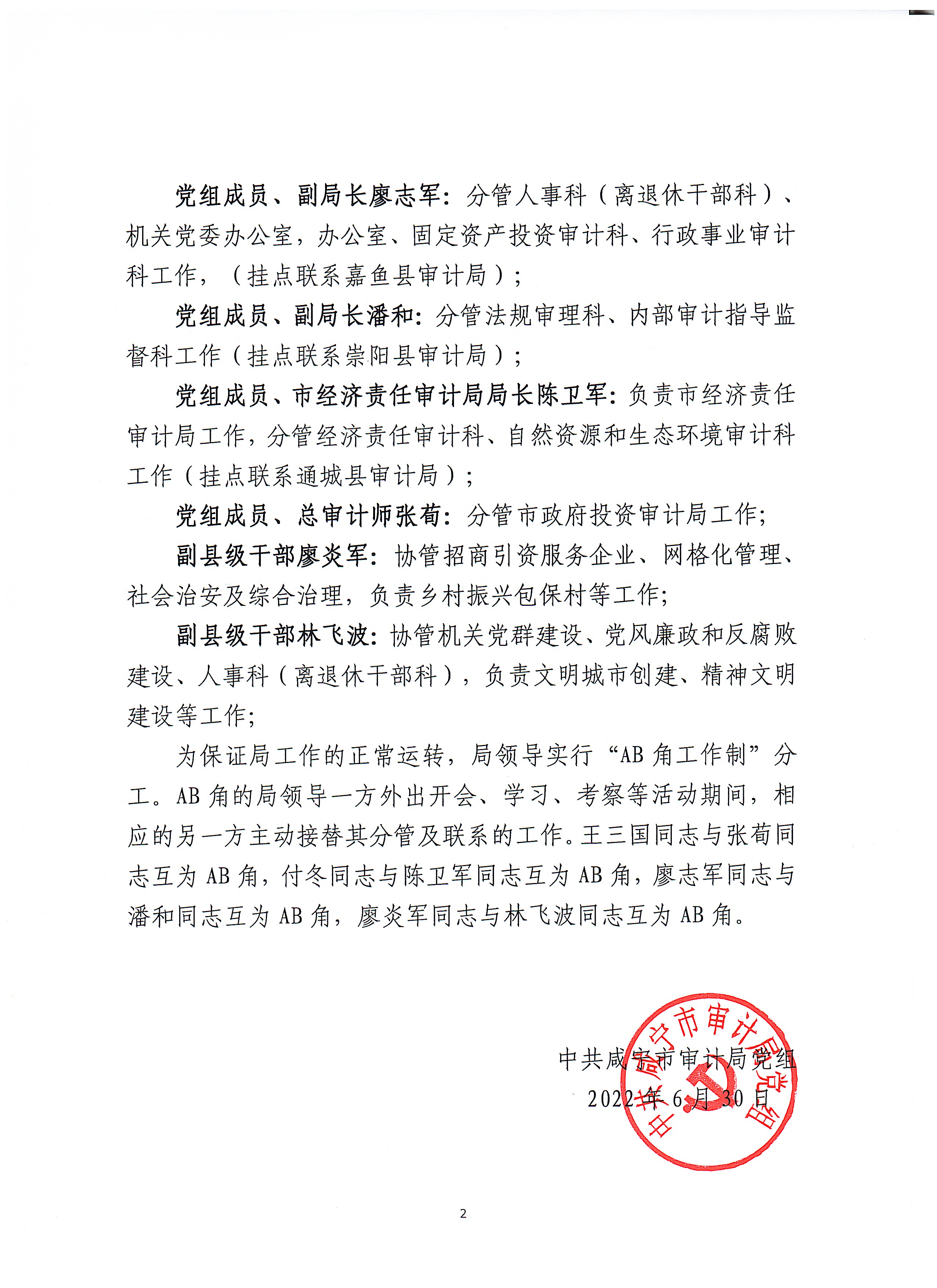 名 称: 关于明确局领导班子成员工作分工及“ab角”的通知 发布日期: 2022年07月07日