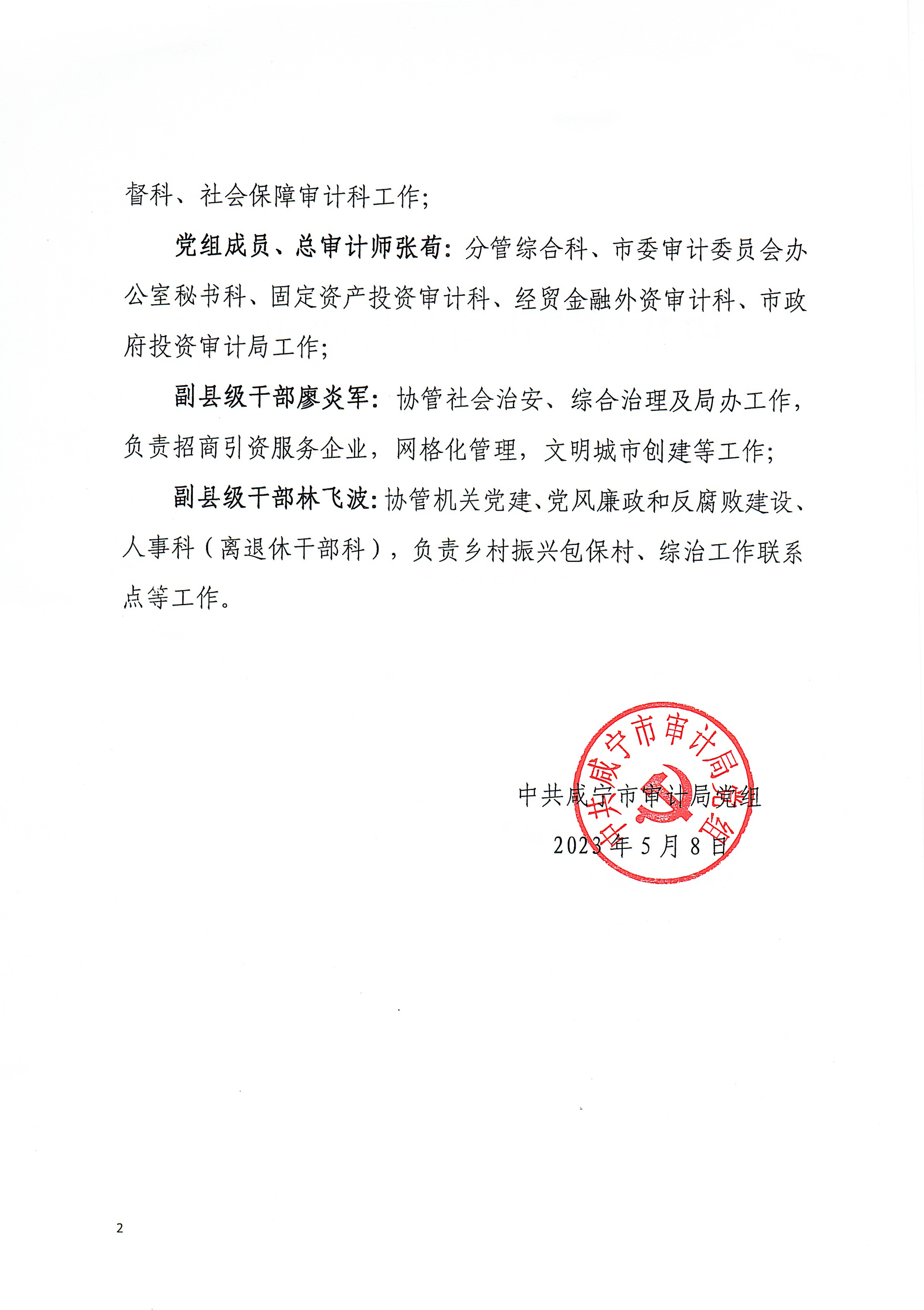 名 称: 关于调整局领导分工的通知 发布日期: 2023年05月11日